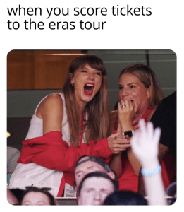 When Taylor actually showed up (a move called “ballsy” by Kelce in his podcast), clad in red-and-white clothes and sitting in a luxury box with Mama Kelce, the internet went wild. There were gifs, there were memes, there is unlicensed Tayvis merch (some of which I might have purchased this morning).