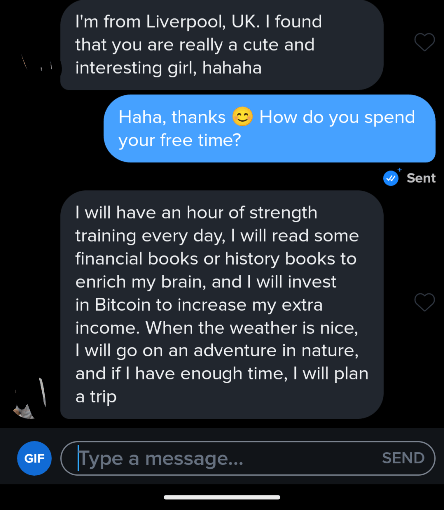 And to my big surprise, this also resulted in a few matches (even though it was significantly less than in phase I). The first guy I matched with, was 29 (for reference, I am 36) and we texted for a bit. One day though – after about 3 days of casually texting about work, hobbies etc – I noticed a push notification on my phone indicating another message from him. It was a short message, only 3 words: