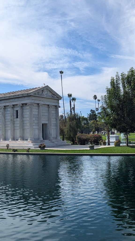 So, does it work navigating LA without a rental car? Yes and no. It is certainly not as bad as some of my work colleagues claimed („In LA they don’t even have sidewalks and the police will call you out if they see you just walking around!“) but it can be challenging. I am spending quite a bit of time here, which is why it didn’t bother me to spend over an hour on the bus from Hollywood to Santa Monica. I liked seeing the city change from a filthy Hollywood via a green and lushious Beverly Hills to seaside Santa Monica. Also, had I not seen the sign from the bus, I wouldn’t have discovered the Hollywood Forever Cementary (which I had never even heard about).
