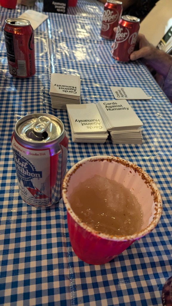 John’s group of friends also includes an eldery gay person, whose partner had died a few years ago and who was basically picked up by them in a bar and has been a part of the group ever since. He happily joined a game of „Cards against Humanity“ and invited me to a day-drinking session in his favourite bar on Friday.