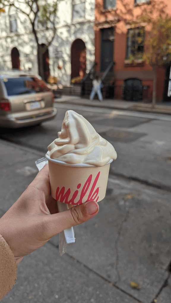 One portion of the soft serve without any toppings was $7. Guess a „Chef’s Table“ appearance and the Name David Chang explain the price point although the store was fairly deserted (as were all the other Milk Bars I’ve seen in Manhattan tbh). Despite the hefty price tag I really liked it. It did indeed taste like cereal milk and was a perfect balance of sweet and salty.