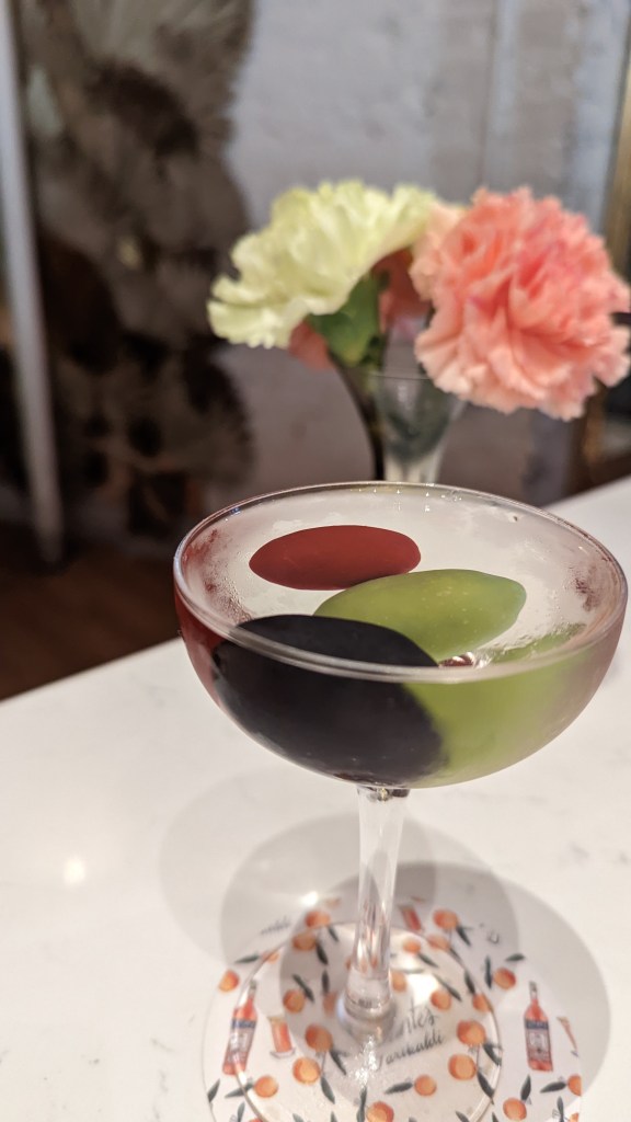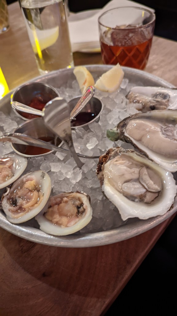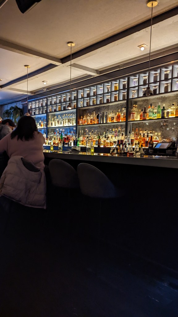 Let’s continue with the „50 Best Bars“ list. On rank No. 93 you find Mace. (Yes, ironically the „50 Best Bars“ list got a 51-100 extension a few years back.) I wouldn’t have gone to Mace if it weren’t for the people at Katana Kitten (see Food and Drink Part 1) who recommended it. Mace has an intriguing concept: every cocktail on their menu is dedicated to a specific spice or herb. For instance, you have a licorice, an opal basil and a chaat masala cocktail. They also do a happy hour offering a choice of two cocktails for $12 each, so for my first drink I went with one of them. It was a Negroni variation with strawberry and horseradish and it was delicious. I loved the heartiness added by the horseradish and the very subtle strawberry flavour balanced that out nicely. I also loved that the cocktail wasn’t too sweet and still had the bitterness that I want in a Negroni. The drink also went really nicely with my oysters and clams, which were also on happy hour for $1.50 a piece. (The only two things that are cheap in New York are public transport and oysters. So I only eat them so often to save money. Poor me…)