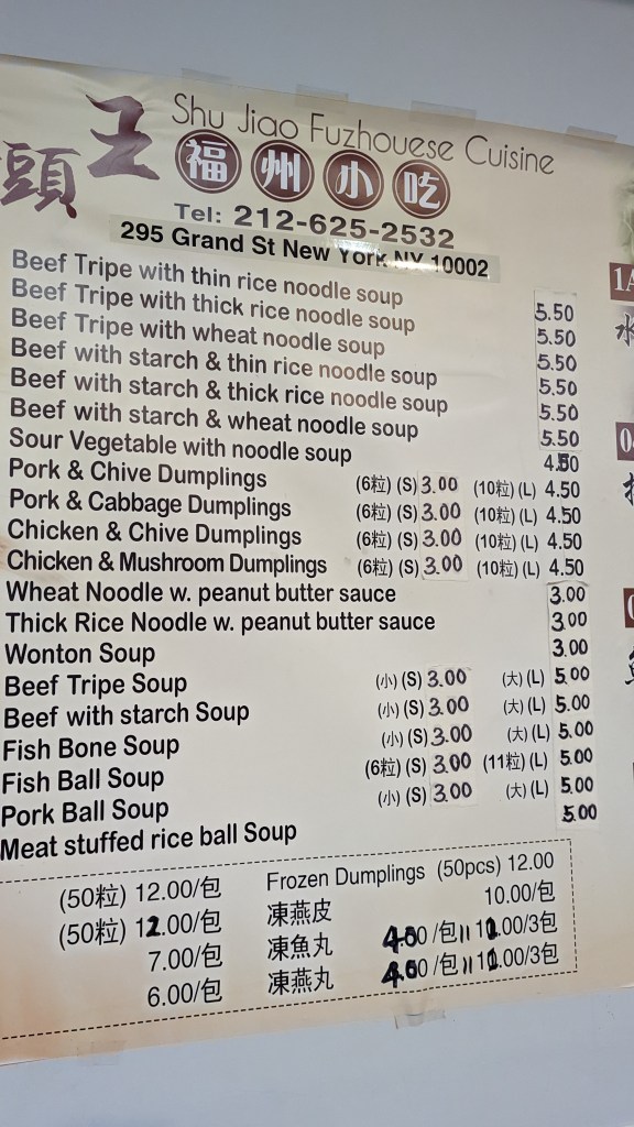 After a 20 minute wait, I got my order and I can only agree with the raving reviews. The fish balls had a nice saltiness to them, the peanut noodles were not too peanutty and simply delicious and the pork dumplings were little steaming pockets of savoury goodness. And the best thing: All three dishes came to $9. Would highly recommend this place! (Pro tipp: If you ever come to New York, have an AirBnB and really, really want to save money, then simply get a bag of their frozen dumplings. It’s $12 for 50 pieces and it will sort you out for a while.)