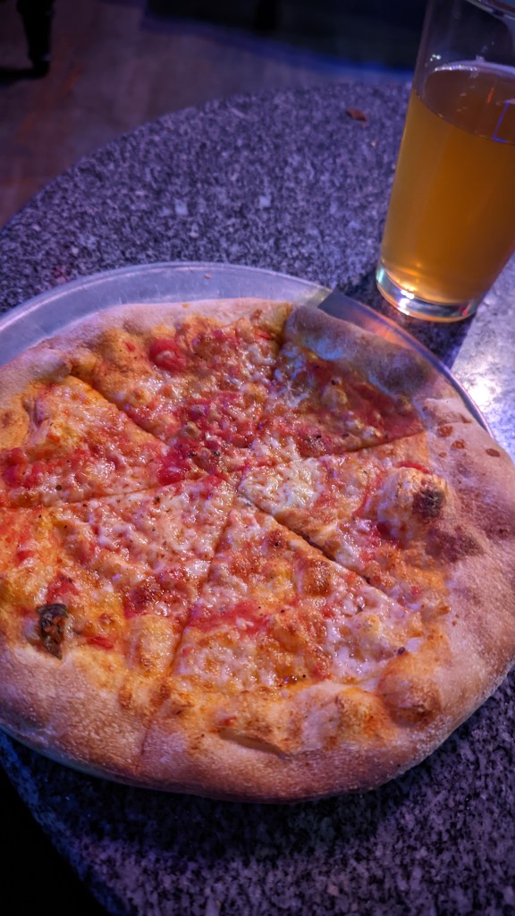 I thought that I’d probably be given a cheap store-bought pizza but was suprised to find that the place actually had a proper pizza oven. In front of it a guy was patiently transforming dough balls into little pizzas. The free pizza only has tomato sauce and a bit of cheese but you can add any topping for an additional dollar. Very fair, I think. I went with the standard one and while it could have had a bit more cheese, it was a freshly baked, fluffy pizza with good tomato sauce – and it was free. Who said you can’t do New York on a budget?