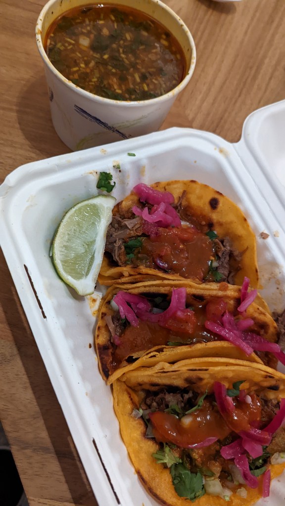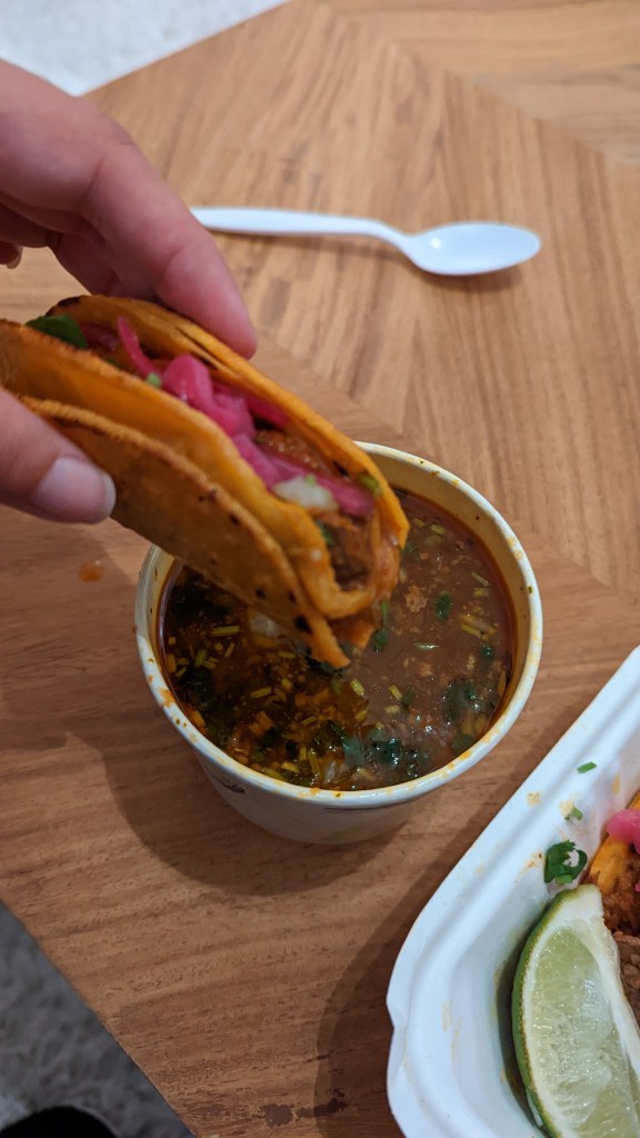 Hands down, one of the best things I’ve eaten in my life. On their own, I find tacos a bit dry sometimes but the birria definitely sorts that out. It was tangy, it was spicy, it was hearty. To be quite honest, I think I wouldn’t even have needed the taco because the birria was so delicious on its own. Now I only need to convince my friend Sturge, best Mexican cook outside of Mexico, that I need birria the next time he puts on a Mexican feast.