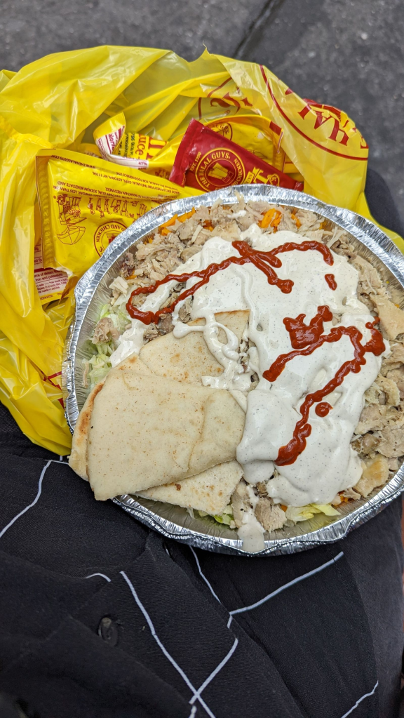 I went to Halal Guys, kind of expecting a better version of a Dönerteller. You get rice, you get some salad, some chicken and lots of white and hot sauce. The hot sauce was delicious but unfortunately that was everything about the meal that was. I already got suspicious when I saw frozen chicken chunks of equal size in a big plastic bag and the bread was store bought as well. The chicken was bland, bread and rice were nothing special. It’s no surprise that you are given 3 packs of mayonnaise style white sauce to cover the tastelessness of the dish. If you gave me the choice between Halal Guys Chicken over Rice and a Dönerteller from my Local Lokanta, then I’d gladly pick Lokanta any day.