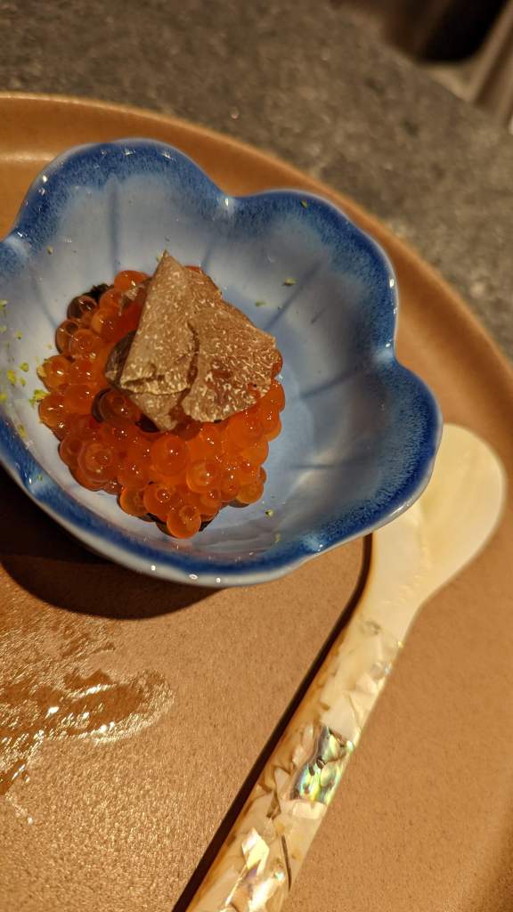 Omakase is Japanese for “I leave it up to you” and this is a big thing here in New York and – as far as I know – in other larger US cities as well. It means that you pay for a fixed menu and you will get anywhere from 10 to 20 individual bites of sushi. Some of the Omakase restaurants have dining rooms but the experience is better when you get a seat at the bar counter. I only did little research because I felt a bit overwhelmed by the sheer amount of Omakase places in New York and they all seemed to have 4.5+ star ratings on Google. So I just randomly opted for Sekai Omakase, a small place only doing Chef’s Counter seating for about 15 people at a time and offering a more minimalist approach to the Japanese delicacy.