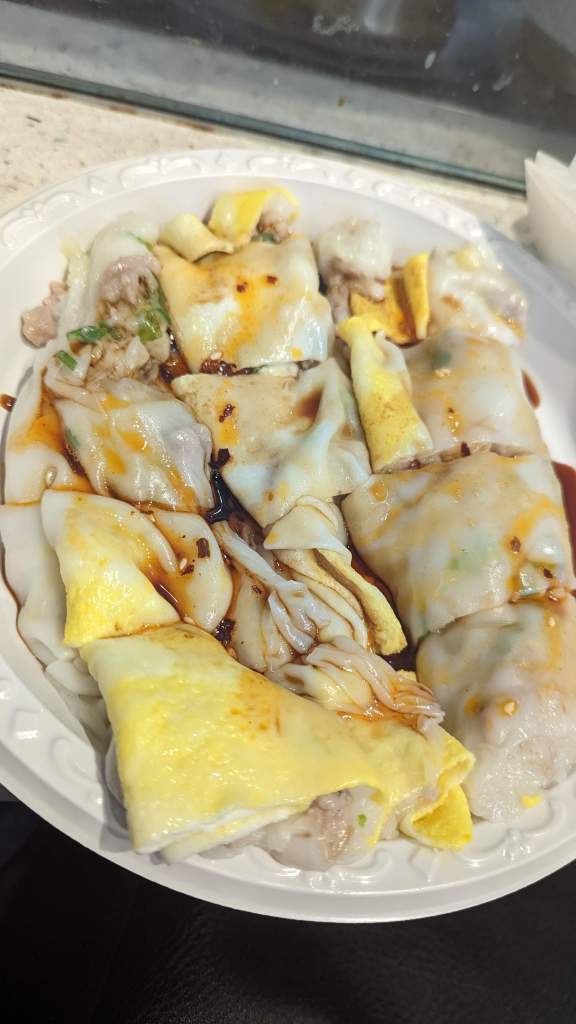 On Halloween night, I went to Joe’s Steam Rice roll, a small “hole in the wall” type shop on Roosevelt Avenue. Rice rolls are made out of ground rice, which is then made into a dough, filled and steamed. Don’t make the mistake to think a rice roll is basically a summer roll. While the principle is the same, the flavours and textures are totally different. The hot, steamed rice roll is way chewier. Whereas a summer roll is often filled with fresh herbs and dipped into punchy fish sauce or a vinaigrette, the steamed rice roll is filled with more hearty ingredients such as minced pork and cooked veggies (similar to dim sum fillings). It is then topped with an egg and drowned in soy sauce and chili oil. All in all, it’s sort of the more hearty, Chinese cousin of the Vietnamese summer roll.