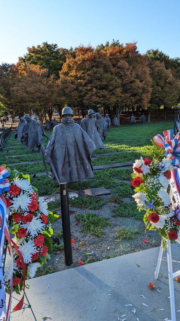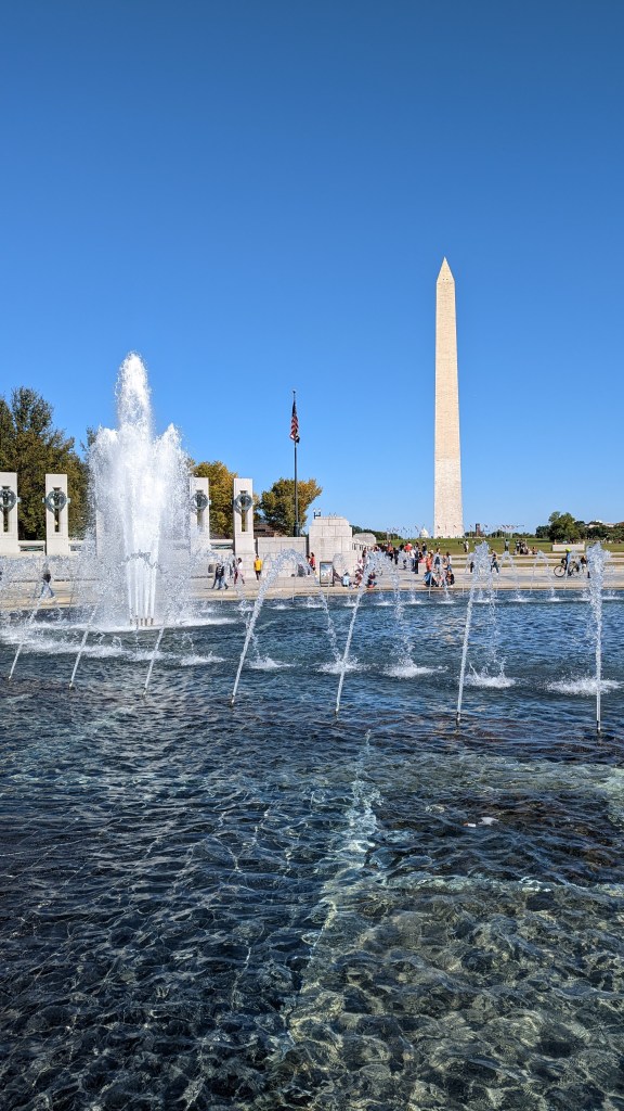 I first got that feeling of overwhelming historicity when taking a (very) long walk to see all the monuments. I started at the White House (much smaller than I expected), then moved on to the Washington Monument (slightly bigger than I expected) and then made my way to the Capitol. So far, so good. The true culture shock, however, hit me on the Western side of the National Mall. The Vietnam War Memorial featured a wall inscribed with the name of every person who fought on the US side and who got killed in combat. If you lost a loved one, you could consult a book, look up the name and see exactly at which part of the wall the person’s name was inscribed. The Korean War monument also featured thousands and thousands of names of people, who got killed in Korea. The WWII memorial was inscribed with phrases such as „Victory by Sea“ and „Victory by Land“.