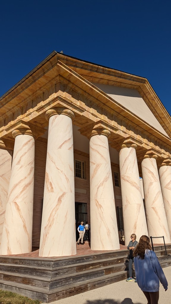 I am just sitting on a train from Washington DC to Philadelphia and I can’t help but wonder why American culture seems to be so invested in the past and so uber invested in creating Cultural Memory. Maybe it is so alien to me because I am German and generally our past is condensed to WWII and deemed „not very pleasant“ (to put it mildly). Yes, we have monuments. Yes, we have museums. Yes, we do remember – but differently. Let’s put it this way: If there was a Cultural Memory party, the US would be John Travolta confidently rocking the dancefloor in a sequined, skin-tight suit flashing flags of every single US president, while Germany lingers in a dark corner, sipping her Radler, trying to avoid eye contact at all cost and only showing other party guests a faded photo of Konrad Adenauer when directly asked for it.
