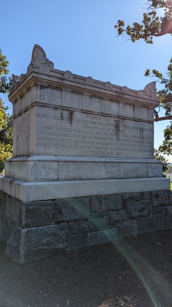 Once upon a time, the area around Arlington House (which is still there and now hosts a small museum) was owned by General Robert Edward Lee. He came into Arlington’s possession by marrying Mary Custis, a direct descendant of Martha Washington. Despite living just outside of Washington, he and his family were firm believers in slavery and had enslaved people run Arlington House. Apparently, influential friends told them to simply hire staff but they refused. When they wanted their house to look a bit like the White House but didn’t have the money for real marble, they simply bought plain stones and had the enslaved men and women of Arlington handpaint them to make them look like the real deal. When Civil War came and pressure on Lee and his likes grew, Virginia militia occupied Arlington estate and he and his family had to flee. The enslaved, however, stayed behind and hosted a Freedmanstown at Arlington. It was also the enslaved people of Arlington who dug the first graves here, when other Washington cemetaries ran full, and who started what would later become Arlington Cemetery (which was aquired by the US government in 1864).