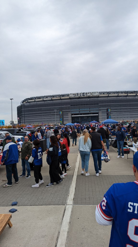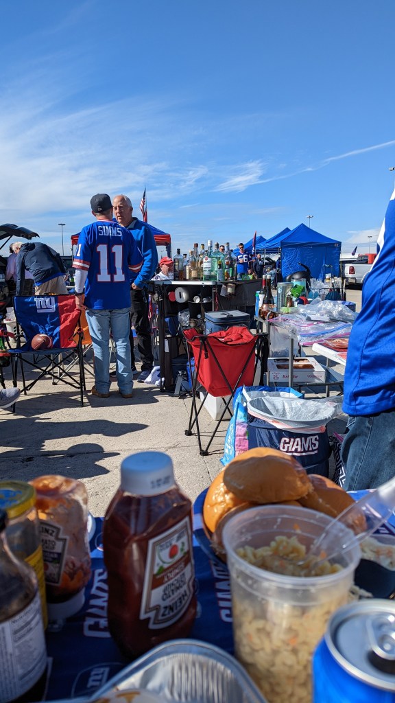 I went to see the NY Giants play the Baltimore Ravens at Metlife Stadium. As soon as I got to the car park I realized that my idea of tailgating was quite off. There were no single use BBQs and no 5 liter kegs of beer. Instead, people were putting on lavish displays of food and drink that probably took them 2 days to prepare and another 2 days to load into their trucks.