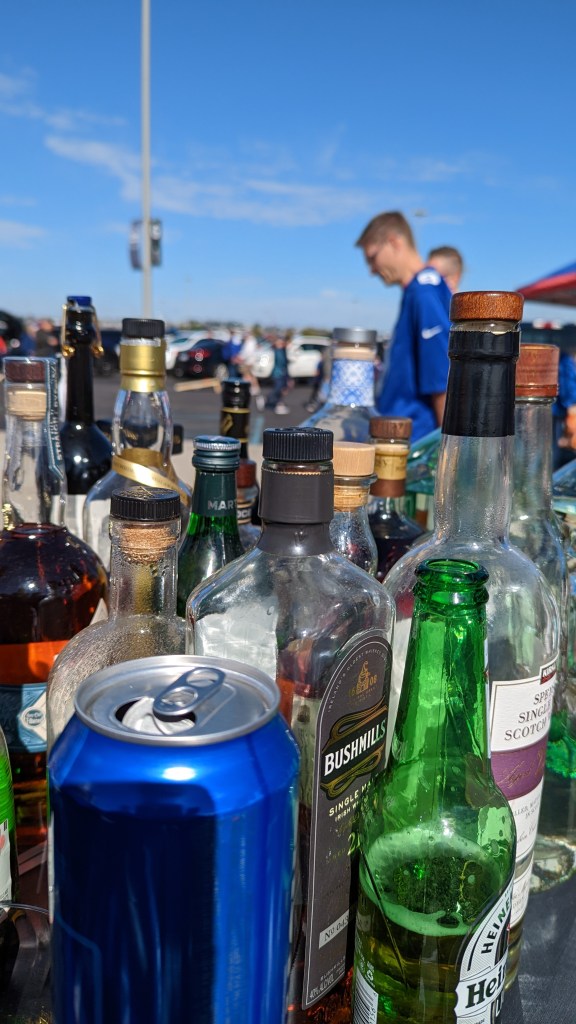 I loved walking around the car park and checking out all the stuff that people brought for a single game day. Most of them had cornhole boards, high power grills, tons of different salads and a surprisingly good selection of alcohol. Yes, the snobby European in me was expecting Bud Light and maybe some Jameson’s but there was more than one set-up with really good bottles of Scottish whisky or the likes.
